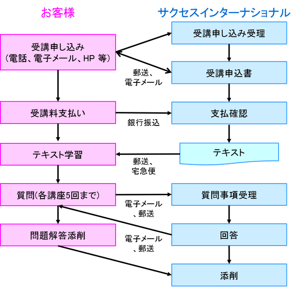 1. 正式にお申し込みを受け付けた後、コースの日程表をお送りします。各講座は日程表に記載されている開始予定日と終了予定日の間で完結されます。 この間で学習、及び添削問題の解答、質問などを行います。