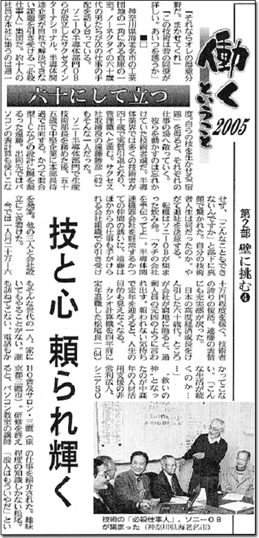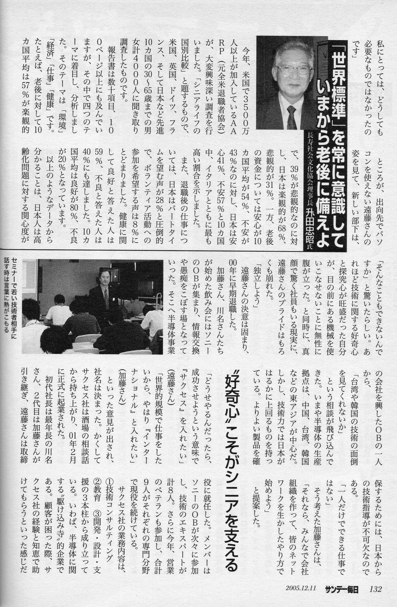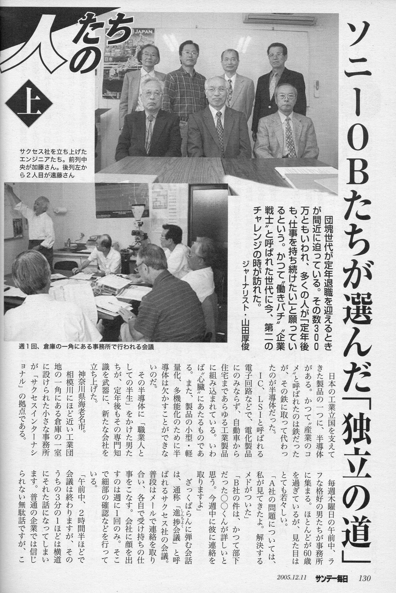 週刊誌『サンデー毎日 (4頁)』 2005年12月11日号 掲載 及び 『日本経済新聞 (1面)』 2005年6月11日 掲載